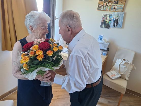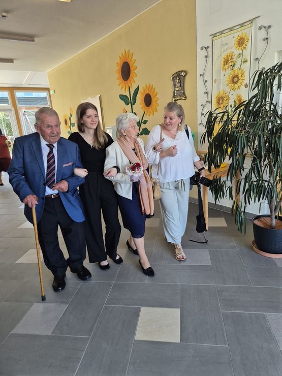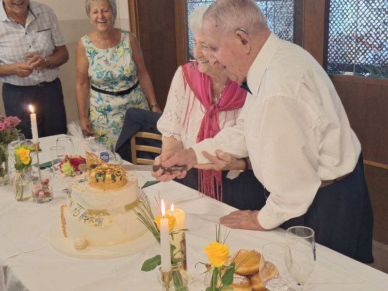 Die Kronjuwelenhochzeit als sehr seltenes Ereignis, bezeichnet das Ehejubiläum von 75 gemeinsamen Jahren. Am 4. September 2025 feiern Frau und Herr Kaufmann dieses Jubiläum im ECO-Haus bei einer heiligen Messe und anschließender Ehrung bei einem Festakt im Ort im Beisein vieler Ehrengäste. Für das ECO-Haus Pflegezentrum war es ebenso ein sehr einzigartiger Anlass, der mit der Überreichung einer Urkunde bekräftigt wurde.